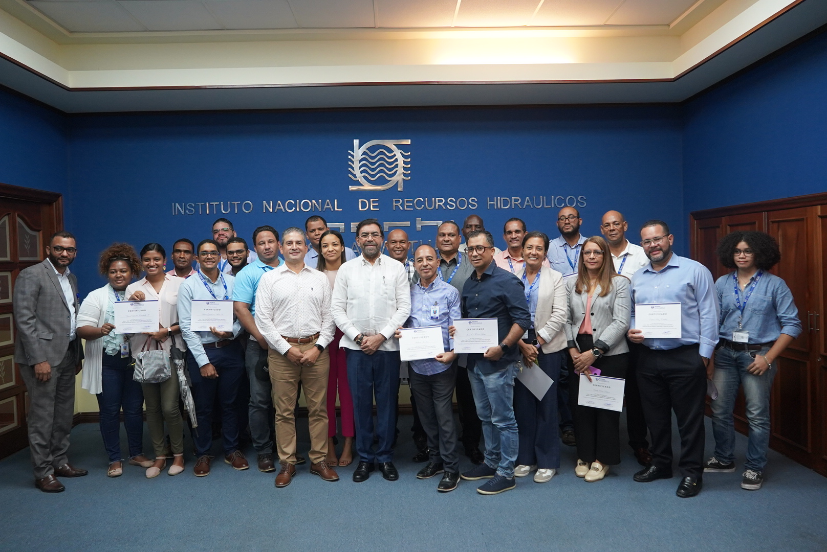 SANTO DOMINGO.- Olmedo Caba Romano, director ejecutivo del Instituto Nacional de Recursos Hidráulicos (INDRHI) encabezó la entrega de certificados del curso especializado en Operación de Drones aplicado a la