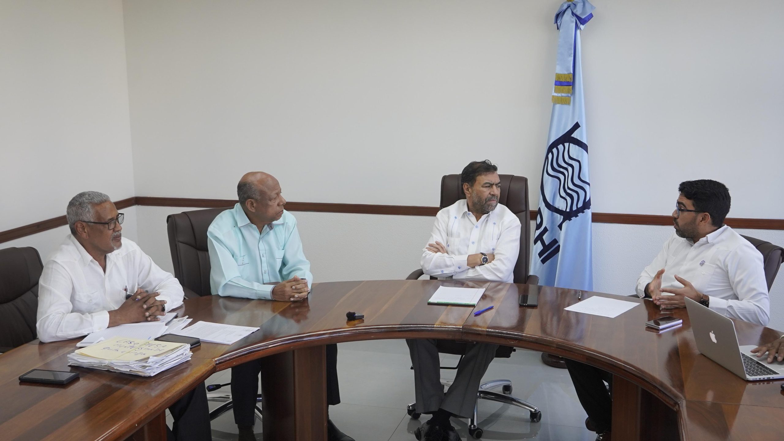 En la reunión realizada en la sede del INDRHI acompañaron al director del IAD los encargados Manuel Mateo, de Captación de Tierras, y Julio César González, de Distribución de Tierras.