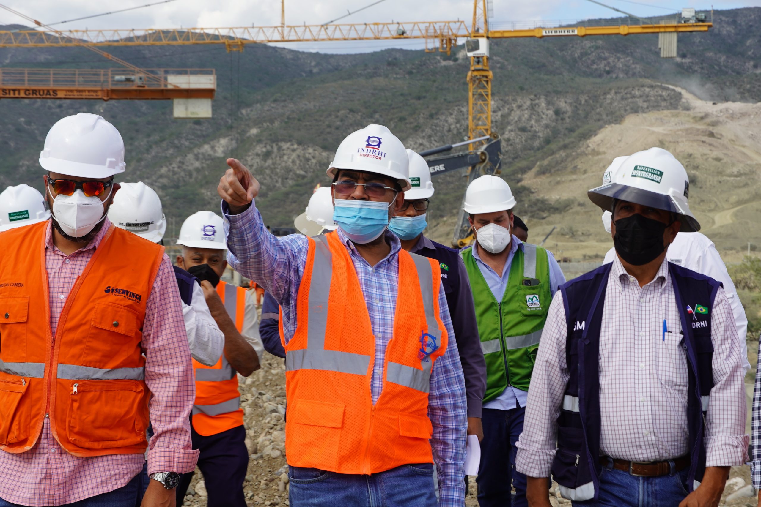 AZUA.- Tras su recorrido de inspección semanal por el Proyecto Múltiple de la Presa Montegrande, Olmedo Caba Romano, director ejecutivo del Instituto Nacional de Recursos Hidráulicos (INDRHI), informó que la obra muestra un avance superior al 90%, destacando que el muro del embalse en su margen izquierda se encuentra en la cota 205, mientras que en la margen derecha ya se alcanzó la altura total, que es de 207 metros sobre el nivel del mar.