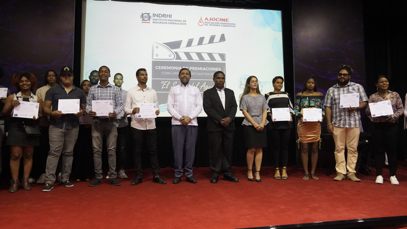 SANTO DOMINGO. – El Instituto Nacional de Recursos Hidráulicos (INDRHI) y la Asociación Dominicana de Jóvenes Cineastas (AJOCINE) entregaron los premios a los audiovisuales ganadores del concurso de cortometrajes “El Sabor del Agua”, iniciativa que forma parte de las acciones institucionales enfocadas al cuidado y preservación del preciado líquido para la vida, en una gala efectuada en el Centro cultural de Indotel.